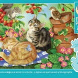 Ce puzzle familial combine intelligemment des grandes, moyennes et petites pièces dans une même image. Les grandes pièces sont placées d’un côté du motif et conviennent parfaitement aux plus jeunes, tandis que les plus petites pièces à l’opposé raviront les adultes et les assembleurs plus expérimentés. La partie centrale avec des pièces de taille moyenne est idéale pour les enfants plus âgés ou les grands-parents – le motif y est bien lisible et l’assemblage fluide.