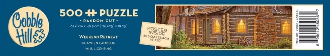 Puzzle COBBLE HILL Refuge de week‑end, 500 pièces. Découpe irrégulière pour un défi accru, poster inclus, dimensions de l’image finie env. 67,6 × 48,9 cm.