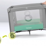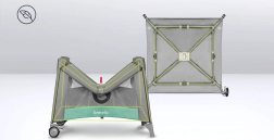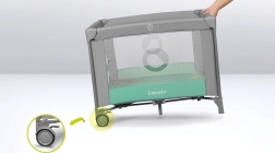 Le parc comprend un matelas en mousse T25 confortable avec une surface 3D variée et un système LockGuard qui empêche les pliages involontaires. Pour une mobilité facile, le parc est équipé de 2 roues avec frein et d'un sac de transport pratique pour un transport confortable.