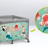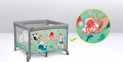 Le parc a une entrée latérale avec fermeture éclair pour un accès facile, et ses parois aérées et transparentes permettent une surveillance facile de l'enfant. Le fond surélevé offre une meilleure ventilation et protège contre le froid du sol. De plus, la construction ne contient pas de bords tranchants, ce qui favorise les tentatives sûres de marcher.