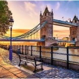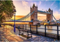 Le puzzle capture une superbe photo du Tower Bridge au coucher du soleil, idéal pour les passionnés d’architecture et de voyage.