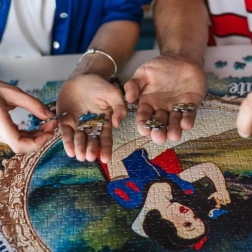 Une grande stabilité une fois assemblé — grâce à l’épaisseur exceptionnelle du carton, le puzzle se déplace facilement.