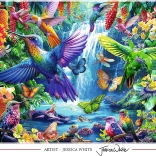 Un motif riche en colibris colorés, plantes tropicales et cascade apporte fraîcheur et énergie positive à votre intérieur. Parfait comme cadeau ou pour se détendre.