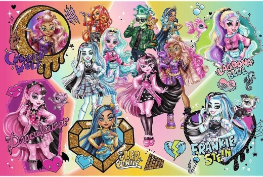 Puzzle 300 pièces Monster High avec motif zombie. Dimensions 60 × 40 cm, papier calandré pour un assemblage facile. Fabriqué en Pologne à partir de matériaux écologiques.