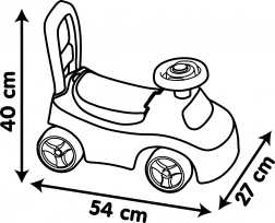 L’assise confortable dissimule un espace de rangement pour les petits objets, tandis que le klaxon mécanique stimule le jeu interactif et la compréhension des relations de cause à effet. Le porteur est conçu pour les enfants à partir de 10 mois, avec une hauteur d’assise de 20 cm et une charge maximale de 50 kg, pour accompagner l’enfant longtemps et en toute sécurité.