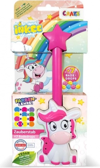 La baguette magique INKEE au design licorne tout mignon apporte aux enfants joie et imagination dans le bain. Insérez simplement une pastille effervescente dans la baguette, plongez-la dans l’eau et regardez se diffuser un parfum coloré de fraise tout en laissant une traînée magique.