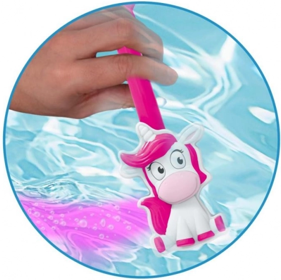 Insérez une pastille effervescente dans la licorne et plongez la baguette dans l’eau – une traînée colorée vive se dégage de la baguette, transformant le bain en une expérience enchantée.