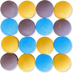 Quatre couleurs vives (bleu, rose, violet, jaune) se mêlent en se dissolvant et transforment votre bain en un spectacle coloré et ludique.