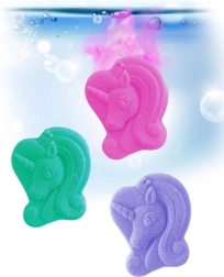 Chaque pastille se met à pétiller et à se dissoudre une fois plongée dans l’eau, parfumant le bain au gâteau au caramel. Trois couleurs différentes – rose, violet et bleu-vert – donnent à chaque bain une ambiance unique. Parfait pour les enfants qui aiment les licornes et les couleurs ludiques.