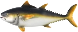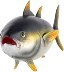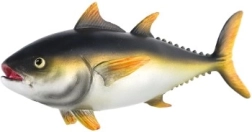 Le modèle de thon se distingue par le façonnage précis des nageoires, des écailles et des proportions. Son corps gris saisissant, rehaussé d’accents jaunes, confère à la figurine un aspect authentique.