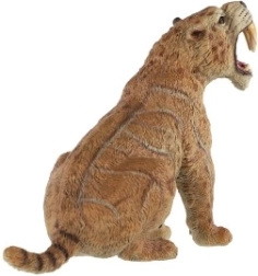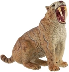 Découvrez le monde des prédateurs préhistoriques avec une fidèle figurine de tigre à dents de sabre. Ce modèle à la gueule ouverte et aux canines imposantes se distingue par une texture de pelage réaliste et des détails soignés qui raviront les enfants, les parents et les collectionneurs.