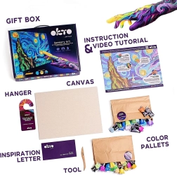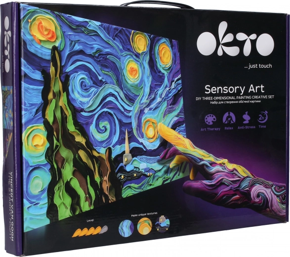 Découvrez une expérience créative avec le set artistique Okto Sensoty Art – Nuit étoilée, inspiré par le chef-d’œuvre de Vincent van Gogh. Grâce à la pâte autodurcissante (air clay) et à la technique de peinture au doigt, vous créerez un tableau en relief avec un niveau de difficulté de 4/5. Idéal pour développer la créativité et se détendre, avec une toile de 30 × 40 cm et tout le nécessaire inclus dans l’emballage.
