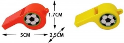 Ce sifflet en plastique est un accessoire idéal pour les événements sportifs et les activités de loisirs. Avec une longueur de 5 cm, il est facilement transportable et ses couleurs vives sont bien visibles.