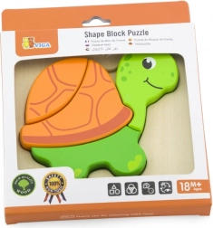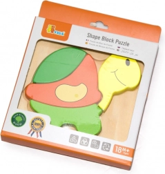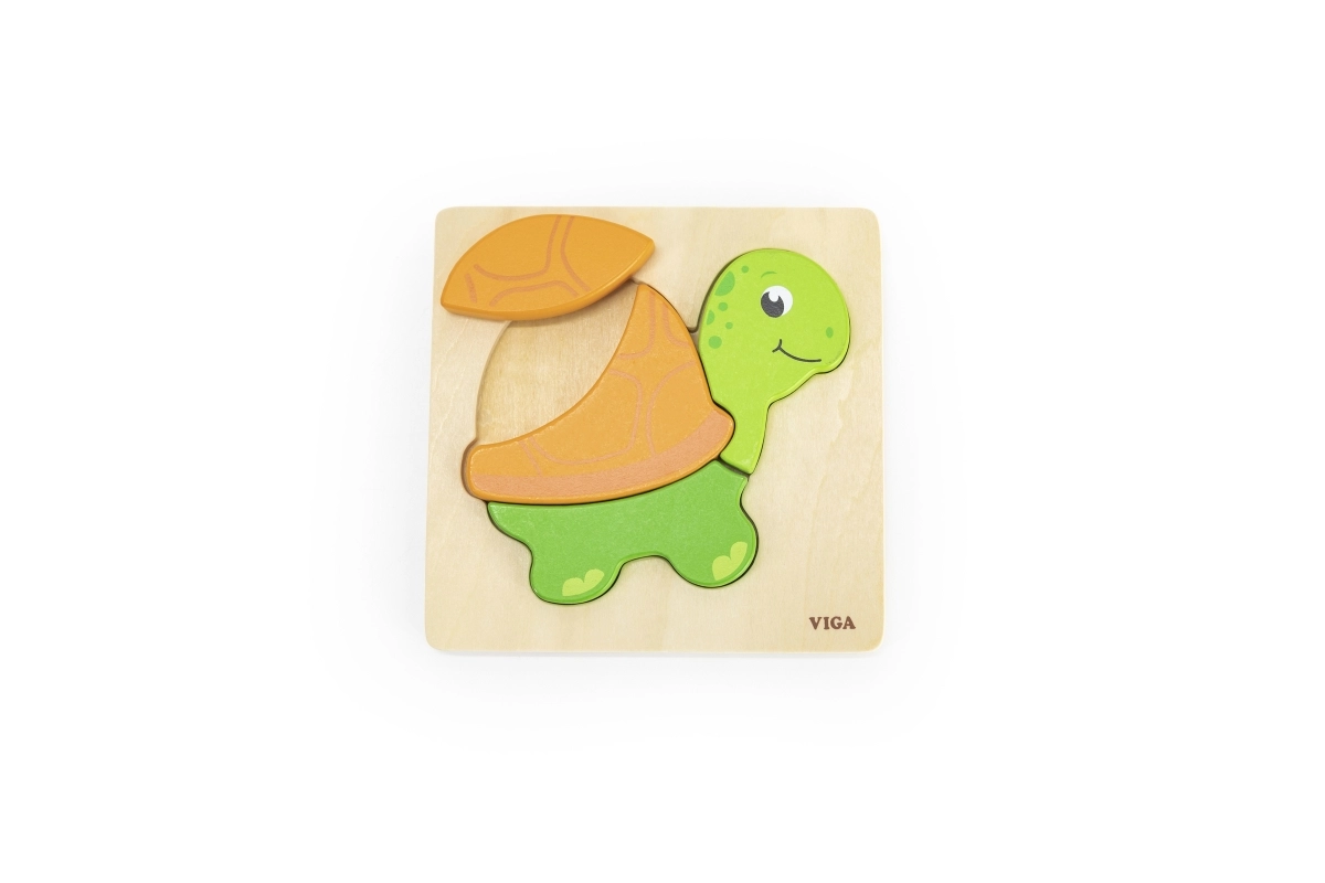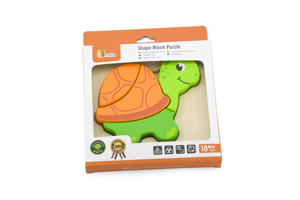 Améliorez les compétences de votre enfant avec ce charmant puzzle en bois. Conçu en forme de tortue avec des éléments vert vif et orange, ce produit stimule l'assemblage créatif et l'imagination. Le jouet est placé sur une base carrée et est un excellent outil pour le développement de la coordination main-œil.