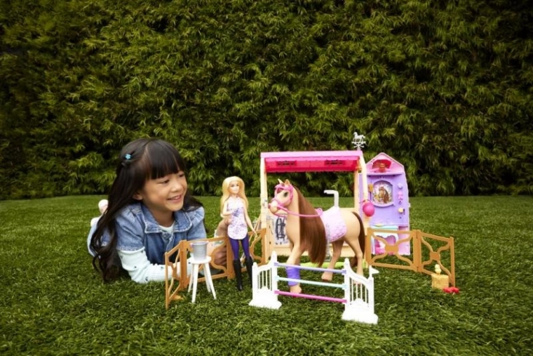 Vivez une journée équestre avec le set Barbie Ultimate Stable, offrant un environnement de jeu à 360° et de nombreux accessoires pour s’occuper du cheval. Les enfants peuvent aider Barbie à nourrir à la station dédiée, nettoyer et brosser dans la zone de soins, s’entraîner au saut d’obstacles puis exposer fièrement les rubans sur le mur à trophées. On trouve aussi un jardin rose « plug and play » et la possibilité de plier l’écurie pour un rangement facile.