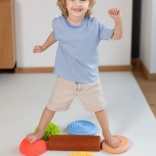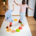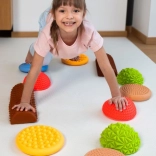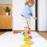 Ce parcours sensoriel aux couleurs pastel douces est parfait pour le jeu, la thérapie et l’exercice. En marchant sur les différentes pierres et le rouleau, les enfants entraînent leur équilibre, leur motricité globale et leur orientation spatiale. Les surfaces variées avec reliefs procurent un retour tactile intense qui aide à activer les pieds et à améliorer la stabilité.