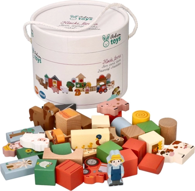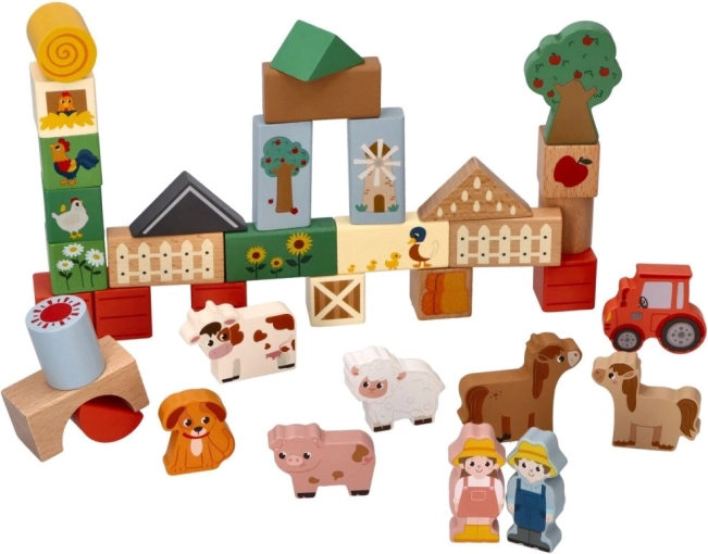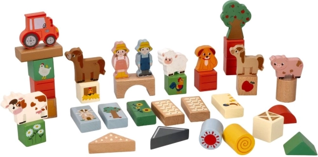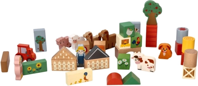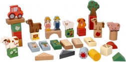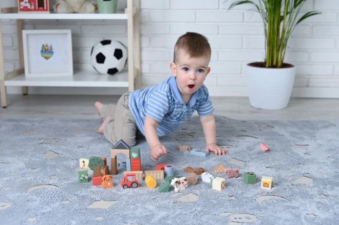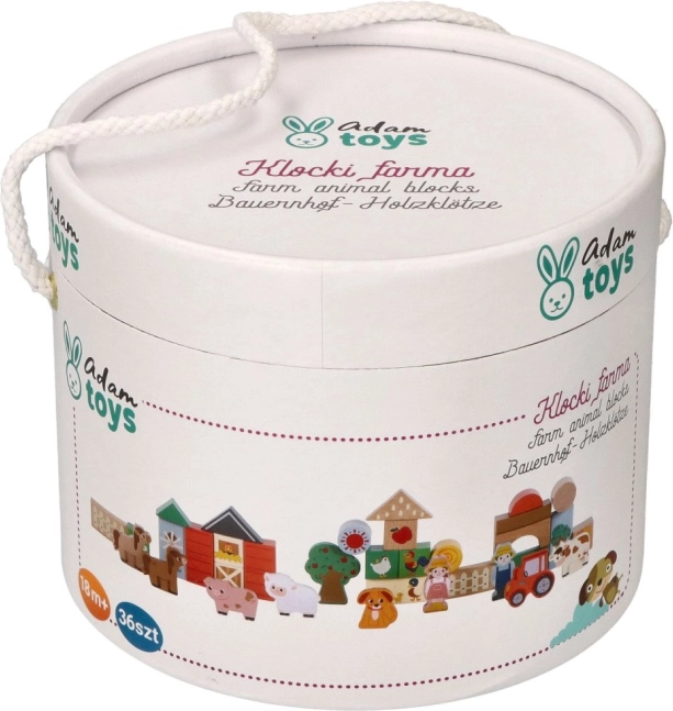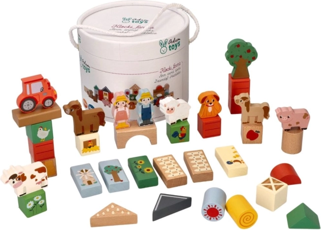 Chaque bloc est richement peint et contient des motifs tels que des animaux, des tracteurs et des bâtiments agricoles qui animent le jeu des enfants.