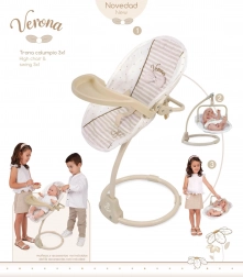 Élégant et pratique, le set 3-en-1 de la collection Verona combine chaise haute, balançoire et porte-bébé en un seul produit. Grâce au siège amovible et réversible avec harnais de sécurité et au plateau en plastique, jouer devient simple et sûr. Son design moderne aux couleurs naturelles douces, sa qualité de fabrication et sa manipulation aisée raviront chaque enfant dès 3 ans.