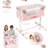 Adorable berceau pour poupées de la série KOALA avec fonction de couchage cododo, pour que la poupée soit en toute sécurité et confortablement juste à côté de la « maman ». Il dispose d’un côté rabattable avec panneau en maille pour une meilleure visibilité, d’une hauteur réglable sur 3 niveaux et de pieds mobiles pour le rapprocher facilement du lit. Léger, stable et doté d’un délicat motif floral en rose et blanc.
