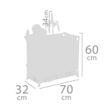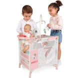 Le set comprend tout pour des soins complets : lit avec fenêtre transparente en maille, mobile à petites feuilles, table à langer, chaise haute avec set en plastique (biberon, bol, couverts) et grande armoire zippée avec tringle et 3 cintres. Grâce à sa conception compacte, l’ensemble se manipule facilement et se range rapidement après le jeu.