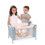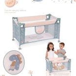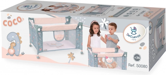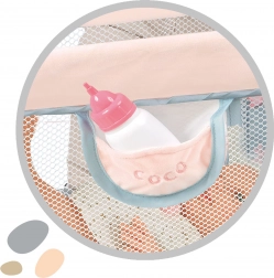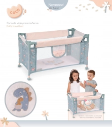 Le lit de voyage pour poupées COCO est un bel accessoire pour la chambre d’enfant et un compagnon pratique pour les déplacements. Grâce à son cadre solide en métal et plastique et à ses côtés en tissu avec maille, il est léger, sûr et bien ventilé. La teinte gris-bleu discrète avec un motif de bébé dinosaure adorable s’harmonise avec les autres accessoires de la collection.