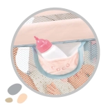 Le lit se plie en un petit paquet en un rien de temps, il ne prend donc pas de place et les enfants peuvent l’emporter facilement partout. La poche latérale pratique garde le biberon, la tétine ou d’autres indispensables de la poupée toujours à portée de main.