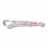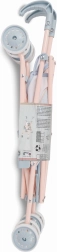 Le cadre métallique robuste et le tissu résistant dans une teinte gris-bleu avec des détails sable et rose garantissent une longue durabilité et une utilisation sûre. Le système de sécurité anti-pincement des doigts protège les enfants lors du pliage. La poussette convient aux poupées de différentes tailles et, grâce à la ceinture à trois points, la poupée reste toujours bien en place.