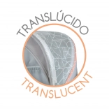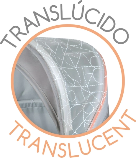 La combinaison de tissus de qualité et de PVC imprimé crée un effet de surfaces vitrées. Les accents cuivrés confèrent à la poussette une allure urbaine et élégante.