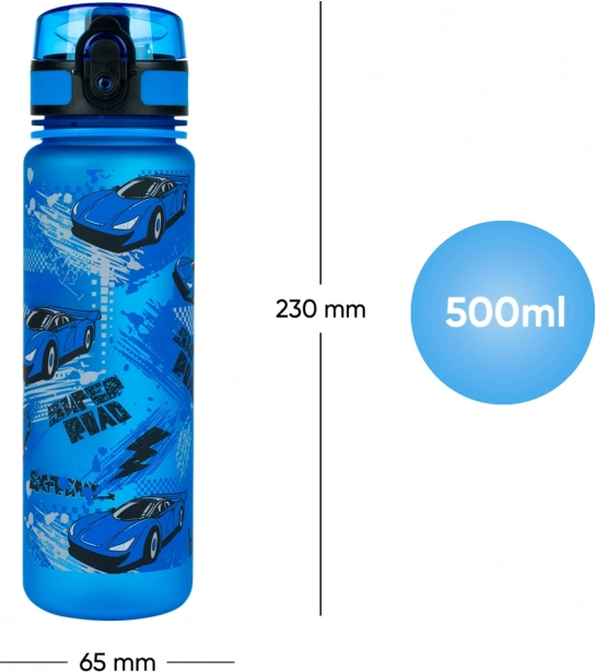 La bouteille est spécialement conçue pour les enfants avec un motif attrayant de voitures de course qui plaira à tous les jeunes amateurs de voitures.