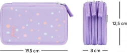 Les élastiques ingénieux sont conçus pour accueillir confortablement même les crayons et feutres plus épais. La trousse est fabriquée en textile résistant et, grâce à son design à pois ludique dans des tons violets, complète à merveille tout ensemble scolaire. Livrée sans contenu, vous pouvez l’adapter exactement à vos besoins.