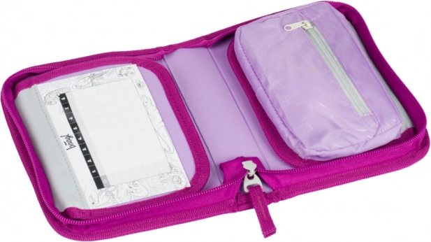 La face avant est ornée d’un motif détaillé de licorne dans des tons rose‑violet, faisant de cette trousse un accessoire incontournable pour l’école.