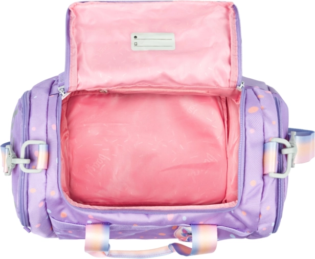 La bandoulière crossbody amovible se règle facilement à la taille de l’enfant. Le sac se porte à l’épaule ou à la main grâce aux poignées solides.