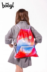 Sac pratique et stylé de la marque BAAGL pour les chaussures et les activités de loisirs, au design rouge attrayant avec motif arc-en-ciel. Il offre un matériau résistant et lavable, une poche zippée pratique et un fermeture par cordons solides pour un port confortable sur le dos. Grâce au mousqueton, vous pouvez facilement l’attacher au cartable ou au sac à dos.