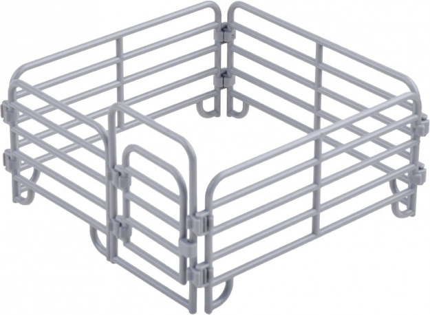 Un enclos gris robuste avec un portail complète votre scène et maintient les animaux ensemble. Une excellente base pour jouer et étendre la collection.