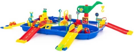 Le set est conçu pour jouer en extérieur – il est parfait pour le jardin, le bac à sable ou près de la piscine. Des pièces en plastique de qualité, des couleurs attrayantes et des éléments interactifs favorisent la concentration et les compétences motrices. Les canaux avec moulin et grue de port offrent des situations réalistes que les enfants aiment explorer encore et encore.