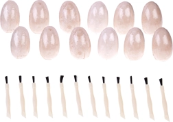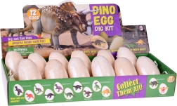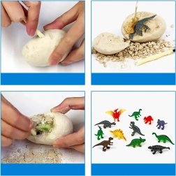 12 œufs en plâtre, 12 figurines de dinosaures (à l’intérieur des œufs), 12 pinceaux, outils de fouille, 12 cartes informatives (EN)