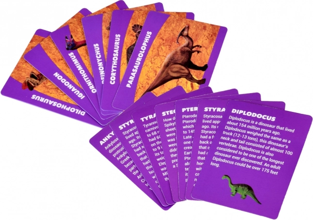 - Cartes éducatives présentant des dinosaures comme T. rex, Stégosaurus ou Diplodocus