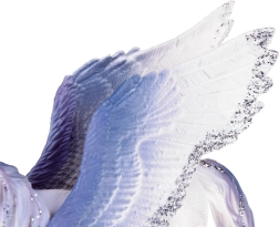 La combinaison du blanc et du bleu avec des accents argentés et des ailes richement texturées souligne le caractère enchanteur de la figurine.