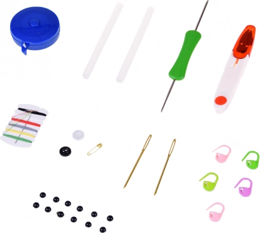 Des fils au crochet, en passant par les aiguilles et les ciseaux – le kit offre un équipement complet pour commencer à créer dès l’ouverture.