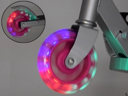 Cette trottinette enfant pliable combine légèreté, stabilité et sécurité. Les roues s’illuminent grâce à des LED intégrées pendant la conduite, sans piles, ce qui améliore la visibilité et l’attrait. La structure aluminium-acier est robuste tout en restant facile à transporter, idéale au parc, sur piste cyclable ou en vacances.