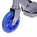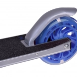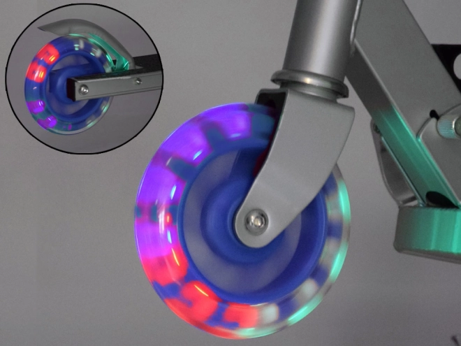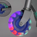 Cette trottinette pour enfants combine légèreté, châssis pliable et conception sécurisée. Les roues LED augmentent la visibilité et l’attrait pendant la glisse, sans besoin de piles – les diodes sont alimentées par l’énergie générée lors de la rotation des roues.