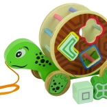 Tortue à tirer en bois avec trieur est un jouet malin pour les tout-petits qui associe mouvement, développement de la motricité fine et apprentissage des formes. Un tambour rotatif coloré avec trieur et 3 blocs exerce la logique et la coordination œil-main, tandis que la ficelle et les roues invitent au jeu actif. Fabriqué en bois de qualité et peint en toute sécurité.