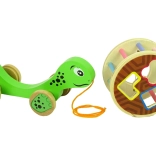 - tortue à tirer, tambour-trieur, 3 blocs géométriques