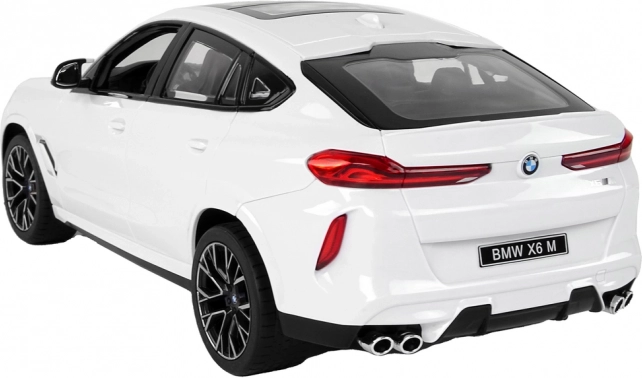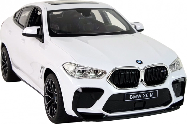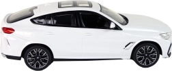 Ce modèle sous licence BMW X6 M en blanc neige se distingue par une carrosserie fidèle, des vitres teintées sombres et des effets lumineux pour une conduite encore plus réaliste, même au crépuscule. Grâce à ses pneus en caoutchouc, il gère aussi bien les sols lisses que les surfaces moins régulières et offre un pilotage fluide avant/arrière et gauche/droite.