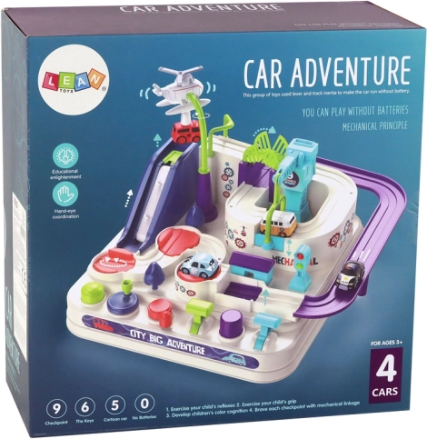 Le circuit interactif à obstacles est conçu pour développer les compétences et la créativité des enfants. Il dispose de boutons et de molettes rotatives permettant un contrôle précis, rendant chaque passage à la fois amusant et stimulant. Les enfants peuvent conduire l’une des quatre petites voitures incluses, franchir divers obstacles et explorer un circuit captivant.