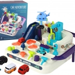 Comprend différentes voies et obstacles permettant le déplacement de mini véhicules et d’un hélicoptère, stimulant le jeu créatif.