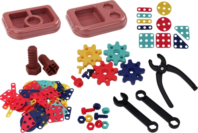 L’ensemble de construction comprend de nombreux outils comme des clés et des pinces. Il aide au développement de la motricité fine.