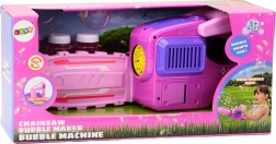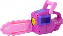 Amusante machine à bulles pour enfants en forme de tronçonneuse rose, qui crée de nombreuses bulles magiques d’une simple pression. Poignée ergonomique pour une prise en main sûre et confortable, le coffret comprend 2 flacons de solution. Certification CE et conformité EN71. Alimentation 4× AA (non incluses).