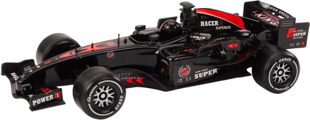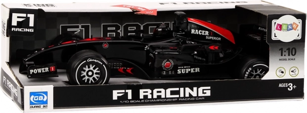 Cette F1 noire est un jouet de course soigneusement conçu, qui séduit au premier regard par sa silhouette réaliste et ses détails à l’échelle 1:10. Lorsque la tête du conducteur bouge, les phares avant et les sons authentiques de voiture de sport s’activent, intensifiant l’expérience de jeu.