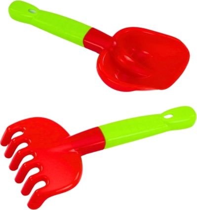 L’ensemble comprend une pelle et un râteau, qui favorisent l’activité physique et la motricité fine des enfants lorsqu’ils jouent dans le sable ou la terre.